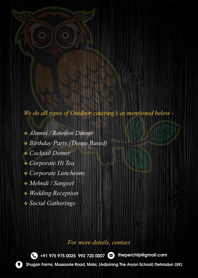 Get in touch with The Perch today to plan delicious dining, perfect events, and memorable celebrations in Dehradun.